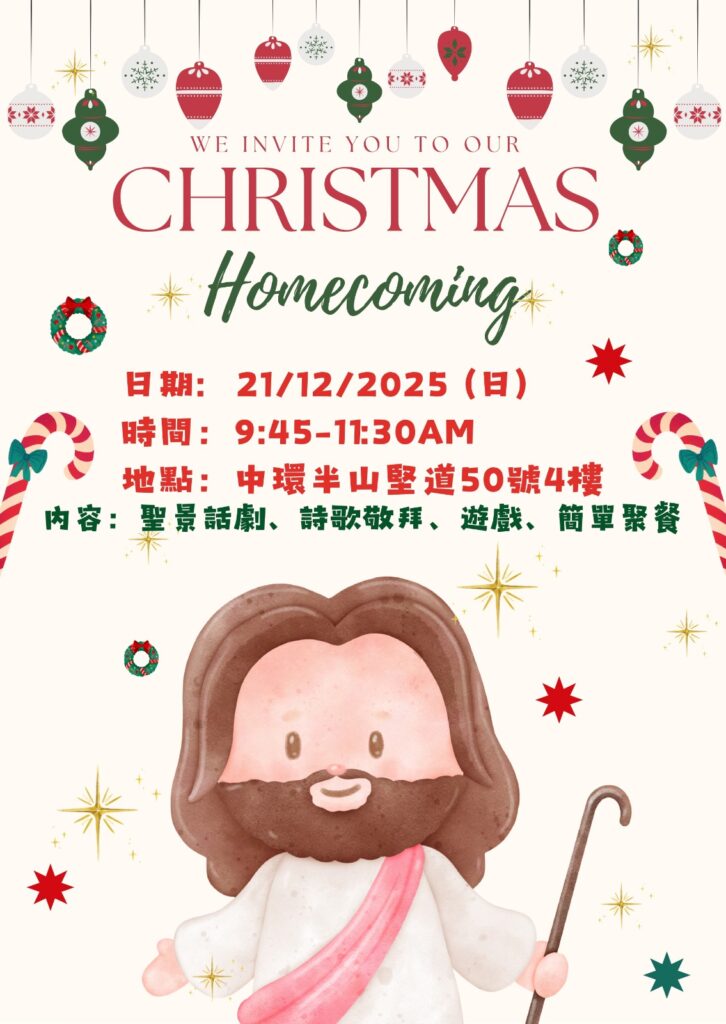 *如小朋友已邀請朋友仔到教會一起參加聯歡會,麻煩盡快告知人數以便我們盡量作最好的安排。
